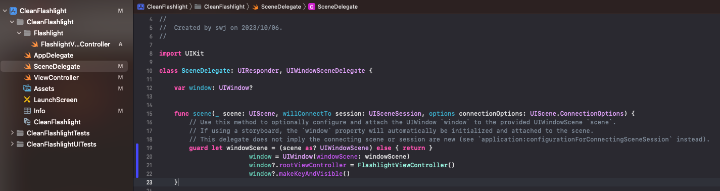 2. SeneDelegate에서 새로 만든 화면 클래스를 연결해 줍니다.